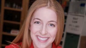 Abby Harrison name strap wipes upwards from bottom of screen.
